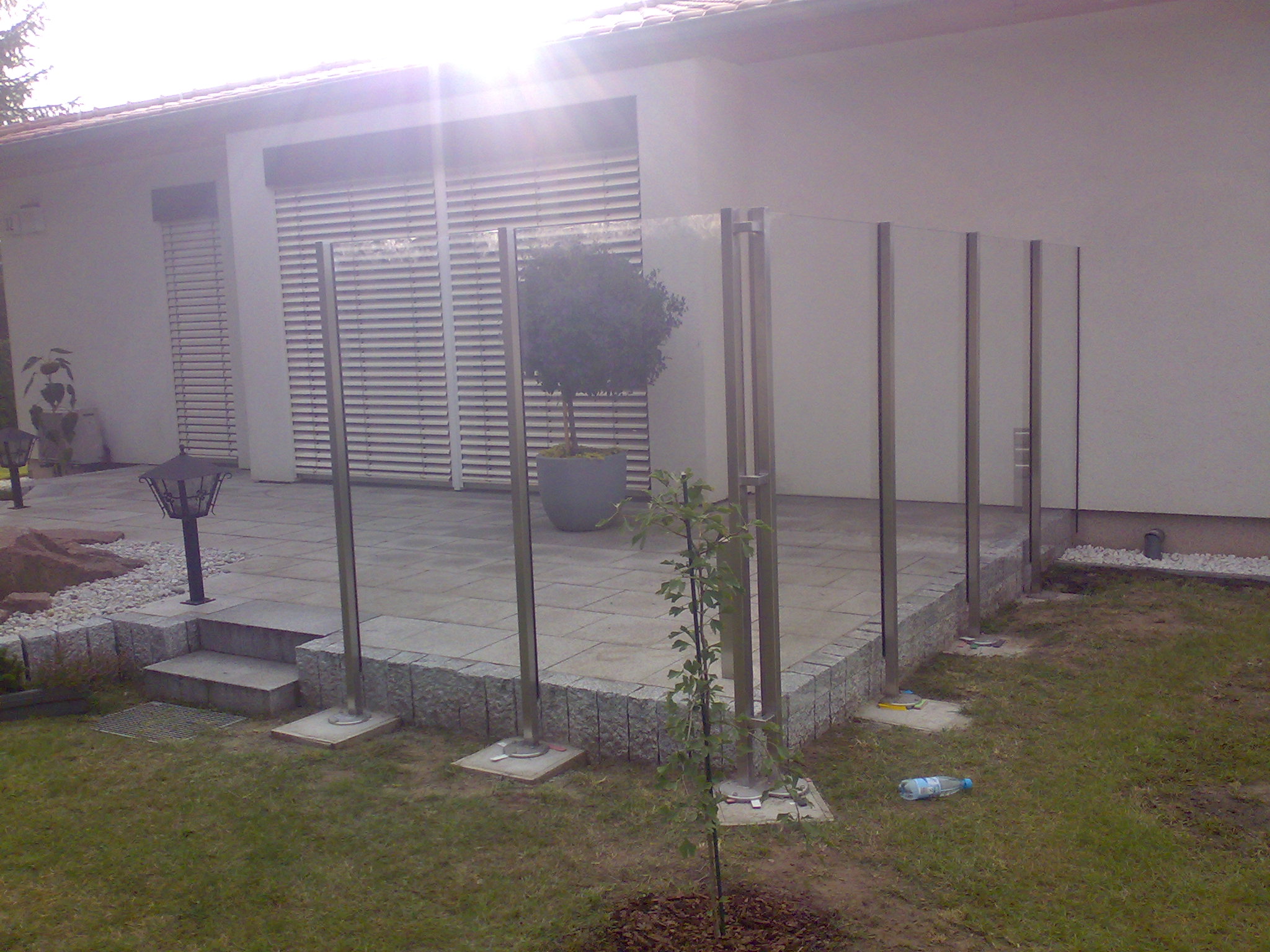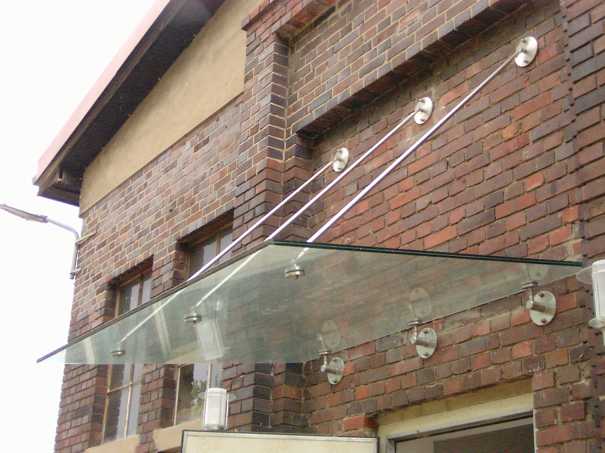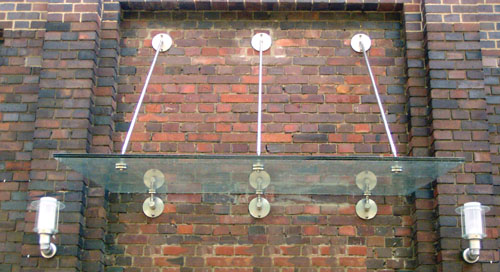aufgenommen. Um zusätzliche Torsionskräfte, die auf das Glas einwirken können, zu verringern, hat man Punkthaltesysteme entwickelt, bei denen die