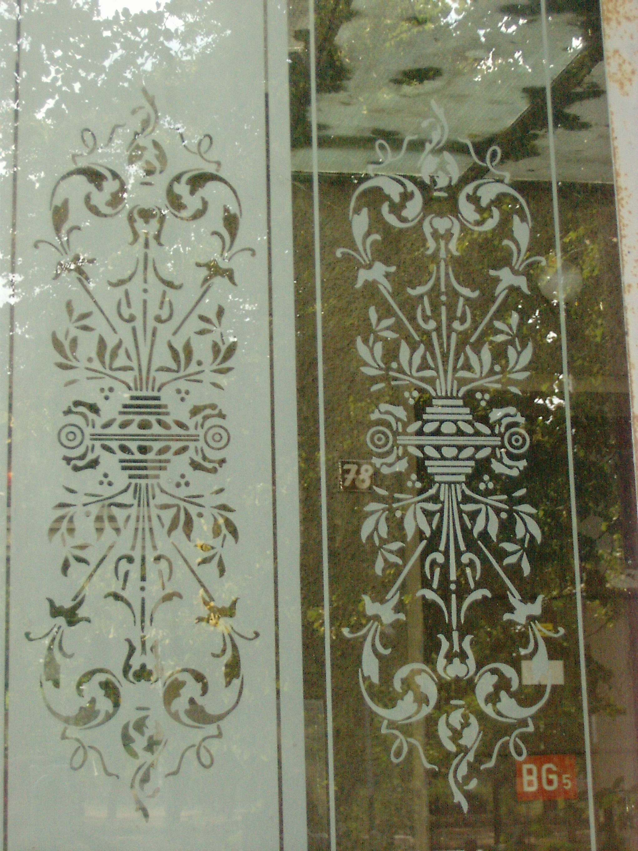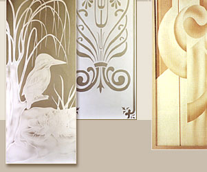 Spiegel, Türscheiben, Ganzglastüren und –anlagen lassen sich auf diese Weise mittels Sandstrahlen verschönern bzw. integrativ in den Bau– und/oder Wohnstil